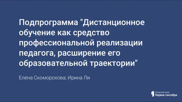 Подпрограмма "Дистанционное обучение как средство профессиональной реализации педагога, расширение его образовательной траектории"