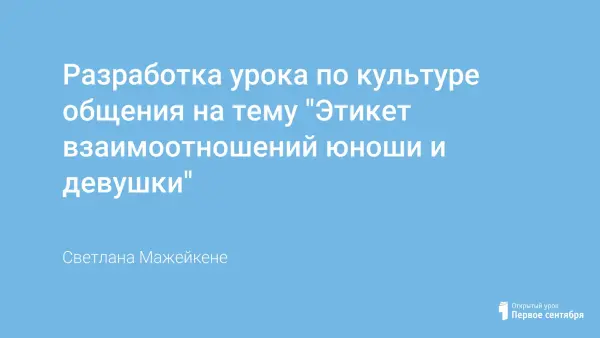 Разработка урока по культуре общения посвящена этикету взаимоотношений юноши и девушки. Рассматриваются вежливые формы обращения при знакомстве, возможные способы выражения чувств, разыгрываются разнообразные ситуации, связанные со взаимоотношениями.