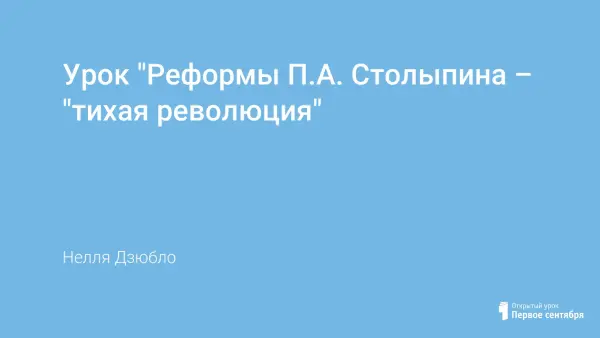 Цели урока: сформировать у учащихся представление о реформах П.А. Столыпина как об определенной трансформации революции "снизу" в революцию "сверху"; уяснить политические, экономические и социальные задачи столыпинского аграрного законопроекта; выявить причины, по которым начинания Столыпина не нашли широкой социальной поддержки; развивать активность и самостоятельность учащихся при анализе исторических документов и тестировании.