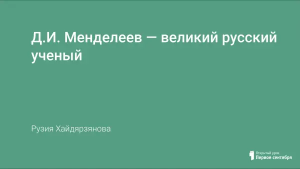 Урок знакомит учащихся с великим русским ученым - Д.И. Менделеевым, его достижениями и вкладом в развитие отечественной науки.