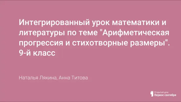 Данный бинарный урок позволяет обобщить знания учащихся 9-го класса по темам «Арифметическая прогрессия» и «Стихотворные размеры» и применить их в конкретных ситуациях. Урок показывает учащимся, что некоторые особенности стихотворной речи требуют применения математических знаний. Также урок нацелен на понимание практической значимости математики, способствует расширению кругозора учащихся.