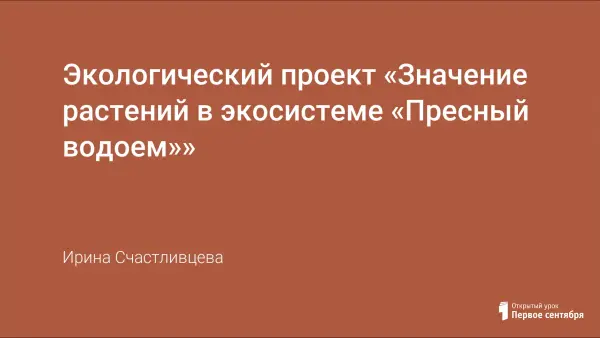 Цель проекта: формирование представления о взаимосвязи животных и растений с условиями жизни в экологической системе «Пресный водоем».