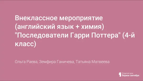 Мероприятие состоит из трех туров, которые подразделяются на четыре этапа: викторина "Волшебный мир Гарри Поттера"; конкурс костюмов волшебников и их рассказы о себе на английском языке; участники демонстрируют свои рисунки необычных существ и описывают их на английском языке; "Волшебный момент", где участники с помощью учителя химии показывают "магические" опыты.