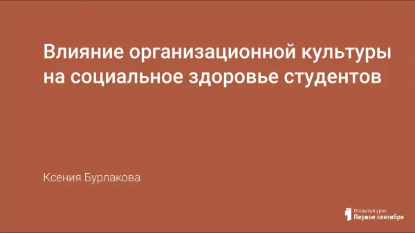 В данной статье мы рассматриваем, как организационная культура (ОК) группы влияет на социальное здоровье студентов. Мы опирались на научные подходы теории менеджмента к особенностям личности и адаптировали их к условиям учебной группы. Социальное здоровье студента связано с социальной адаптацией и индивидуализацией.