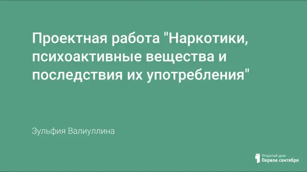 Сегодня общество достаточно серьезно обеспокоено распространением наркомании среди детей и подростков. Наиболее эффективным методом по ведению профилактической работы против наркомании и психоактивных веществ является метод проектов, так как он всегда ориентирован на самостоятельную деятельность.