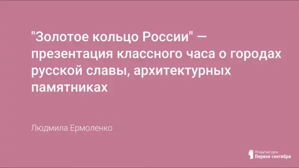 Классный час «Золотое кольцо России» входит в блок бесед "Моя Родина — Россия"; позволяет познакомить учащихся с культурным и архитектурным наследием нашей Родины историческими достопримечательностями, прославившими русский народ в веках.