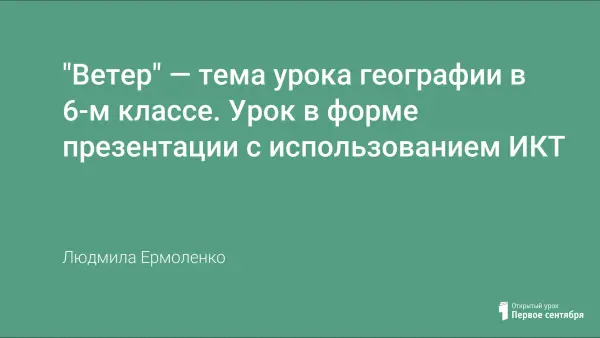 Презентация урока «Ветер» проводится в 6-м классе при изучении темы «Атмосфера» и способствует более осознанному восприятию процессов, происходящих в атмосфере. Цели урока: формирование представления о причинах образования ветра; ознакомление с видами ветров; с приборами, позволяющими измерять скорость и направление ветра; обучение приемам построения «розы ветров» и определения направления и скорости ветра. В ходе урока используется мультимедийное оборудование, значительно усиливающее обучающий эффект.