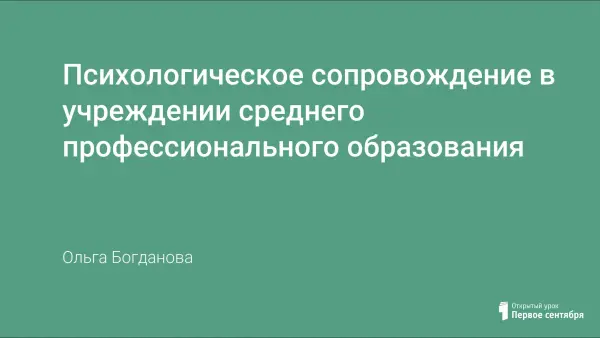 Психологическое сопровождение в работе службы социально-психологического сопровождения актуально в учреждениях начального и среднего профессионального образования. Это объясняется большим вниманием не только к формированию квалифицированного рабочего и специалиста, но и развитию его как личности. Тем более что основная масса контингента учебного заведения имеет особенности в развитии (так называемые трудные подростки).