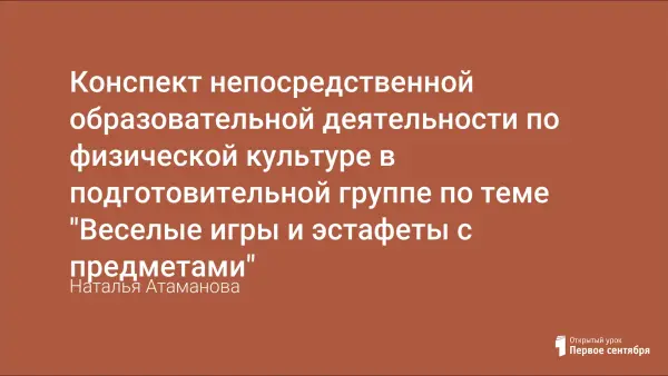 Конспект непосредственной образовательной деятельности по физической культуре в подготовительной группе в виде весёлых игр и эстафеты с предметами.