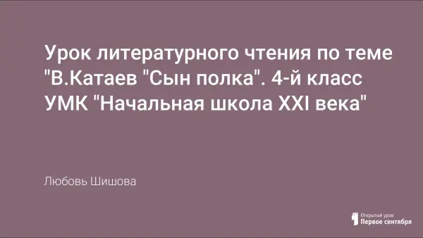 Представлен урок литературного чтения в 4-м классе по теме “В.П. Катаев «Сын полка» – произведение о детях войны”. Предлагаемый урок позволяет активизировать познавательную деятельность, формировать умение работать с текстом; воспитывает интерес к чтению произведений о детях войны.