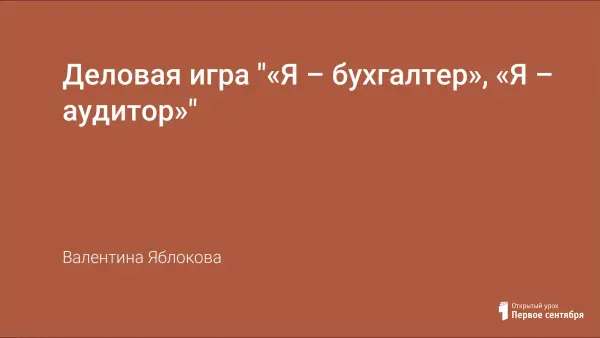 Деловая игра "«Я – бухгалтер», «Я – аудитор»"