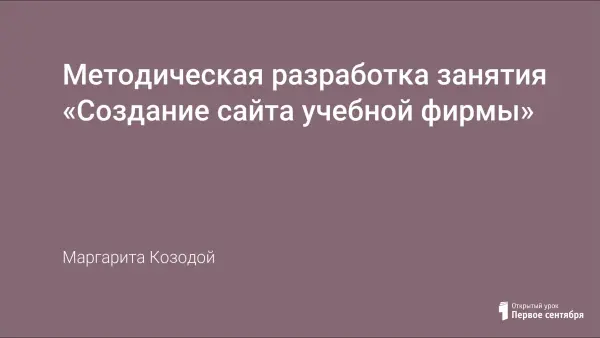 Методическая разработка занятия «Создание сайта учебной фирмы»