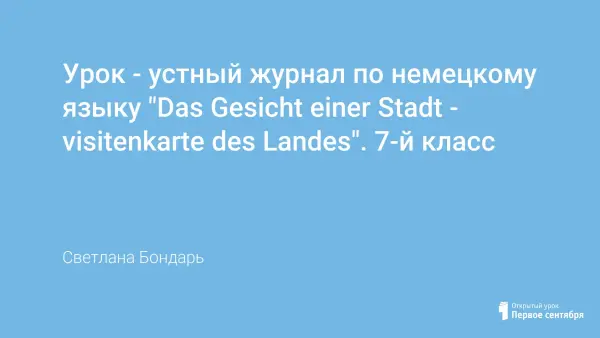 Цели урока: расширение кругозора учащихся, приобщение к другой национальной культуре; знакомство учащихся с некоторыми немецкими и русскими городами; учить использовать лексику для решения коммуникативных задач: уметь коротко описывать изученные города, свой город (село); тренировать в употреблении неопределенно-личного местоимения man.