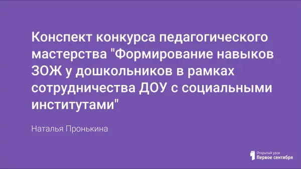 Конспект конкурса педагогического мастерства "Формирование навыков ЗОЖ у дошкольников в рамках сотрудничества ДОУ с социальными институтами"