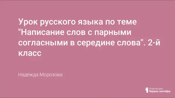 Основные цели урока: находить способ проверки правописания парных согласных на конце и в середине слова; определять позицию парных согласных на конце и в середине слова, сопоставлять произношение и написание; развивать навыки грамотного письма; развивать внимание к правильному употреблению слов с учетом их сочетаемости; развивать речь учащихся.