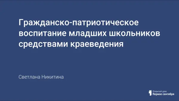 Воспитание патриотизма и настоящего гражданина нашей страны являются основными составляющими учебно-воспитательного процесса. Краеведческая деятельность имеет огромные возможности по приобщению младших школьников к культуре Владимирщины. Эта работа позволяет приобщать ребят к культурному наследию "малой родины".
