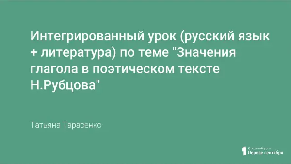 Интегрированный урок русского языка и литературы в 6-м классе помогает выявить различные значения глагола на материале поэзии Н.Рубцова, создает условия для развития творческих способностей, образного мышления учащихся, эмоционального восприятия поэтических произведений.