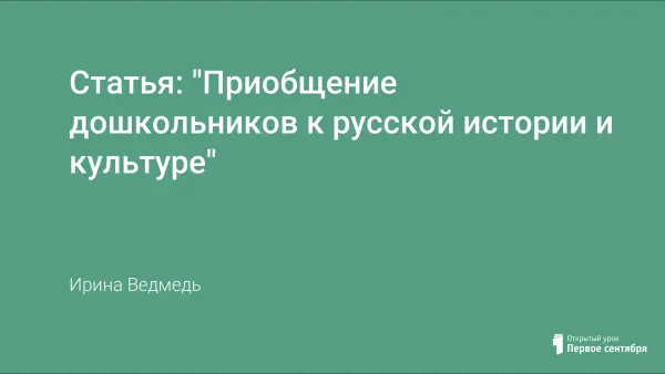 Статья посвящена работе с дошкольниками и духовно-нравственному воспитанию детей. Основные цели работы – показать всестороннюю связь человека с окружающим миром, включить детей в активное познание своей малой родины, формировать нравственные качества детей: основы гражданственности, любовь к Родине, бережное отношение к ее историческому и культурному наследию.