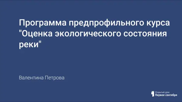В данной статье рассказывается о структуре и особенностях предпрофильного курса «Оценка экологического состояния реки». Определены методы исследования учащимися пресноводного зоопланктона; сбора, обработки и изучения полевого материала, методов биоиндикации, характеристики типов живых организмов. Прилагаются технологические карты, которые являются методической основой проведения занятий. Учтена сезонность проведения данного курса.