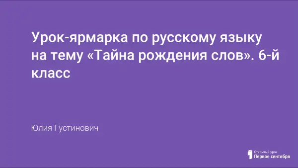 Урок-ярмарка позволяет в игровой форме познакомить учащихся с таким разделом лингвистики, как этимология. Знание происхождения слова позволяет не только понять его значение, но и правильно употреблять слово в языке, грамотно склонять или спрягать, сочетать в предложении с другими частями речи. Урок носит развивающий характер, подборка заданий заставляет учащихся наблюдать сравнивать, обобщать, делать выводы. Урок проводится с использованием современных технологий.
