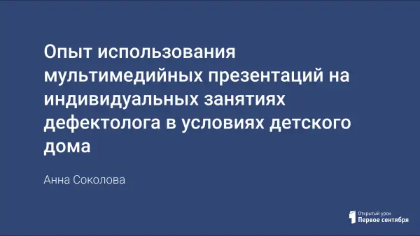 Целью работы является попытка проанализировать опыт использования мультимедийных презентаций на индивидуальных занятиях дефектолога в условиях детского дома.
