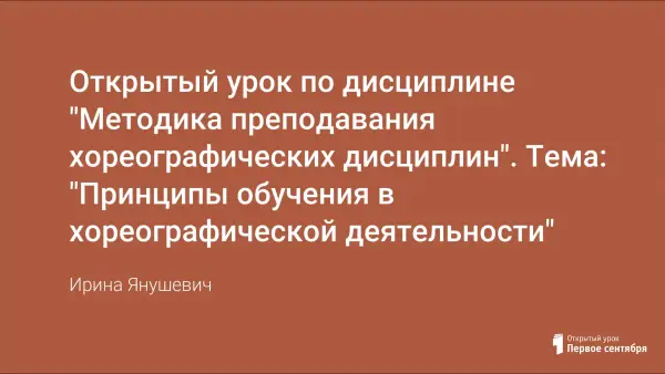 Урок расширяет знания студентов по теме "Методика преподавания классического танца". Использование мультимедийного оборудования (показ слайдов, видео) на уроке позволяет расширить круг знаний студентов в сфере методики преподавания хореографических дисциплин.