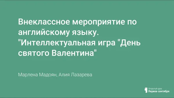 Данное мероприятие рассчитано на учащихся 8–11-х классов и направлено на формирование коммуникативных навыков по теме «Праздники» и, в частности, «День святого Валентина», повышение мотивации обучения иностранному языку, расширение кругозора учащихся, развитие интереса к странам изучаемого языка.