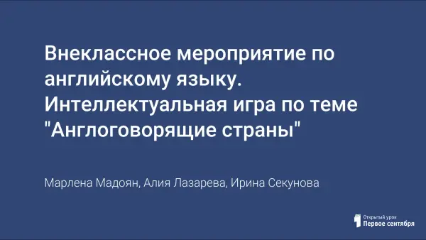 Мероприятие рассчитано на учащихся 7–9-х классов, направлено на формирование коммуникативных навыков по теме «Англоговорящие страны» и повышение мотивации обучения иностранному языку; расширение кругозора учащихся, развитие интереса к странам изучаемого языка.