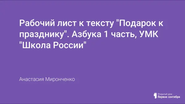 Представлен рабочий лист к тексту "Подарок к празднику".