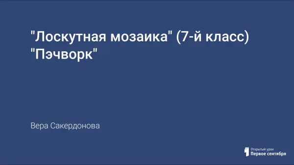 На уроке учащимся предлагается изучить лоскутную мозаику двух культур: русская лоскутная мозаика и лоскутная мозаика народа саха, составить эскиз изделия в программе Paint. В ходе урока проводится текущий контроль, корректировка, дополнение.