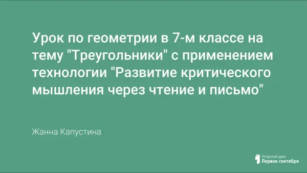 Урок по геометрии разработан и проведен в рамках технологии «Развитие критического мышления через чтение и письмо». Главным условием развития критического мышления является провоцирование познавательной активности учащихся, критического осмысления ими предложенного теоретического и практического материала и критического отбора информации.