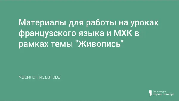 В статье представлены материалы для работы на уроках французского языка или МХК в рамках темы "Живопись". Освещено несколько тем: импрессионизм, постимпрессионизм, русская живопись XX века. Среди материалов можно найти лексику по теме, текст, содержащий основную информацию и презентацию по теме.