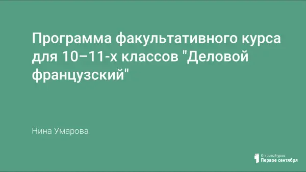 Деловые бумаги занимают все большее место в жизни современного человека. Возрастает роль правильно оформленных документов как в профессиональном определении, так и в повседневной жизни. Курс "Деловой французский" направлен на развитие навыков делового общения в устной и письменной формах у учащихся старших профильных классов, которые уже владеют основами французского языка.