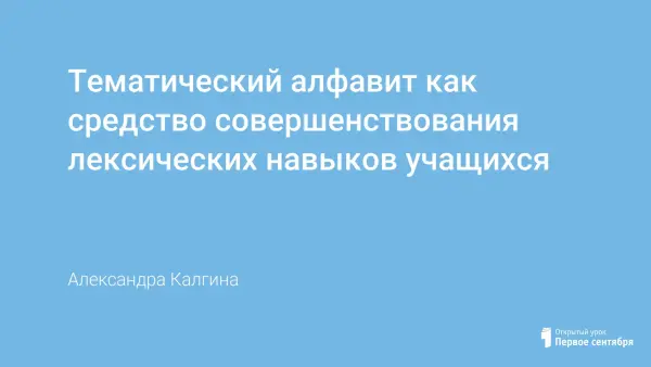 Данная статья посвящена созданию тематических алфавитов для детей, изучающих язык на начальном этапе обучения, которые могут быть не только хорошим наглядным пособием в рамках одной лексической темы, но и одним из средств развития лексических навыков учащихся.