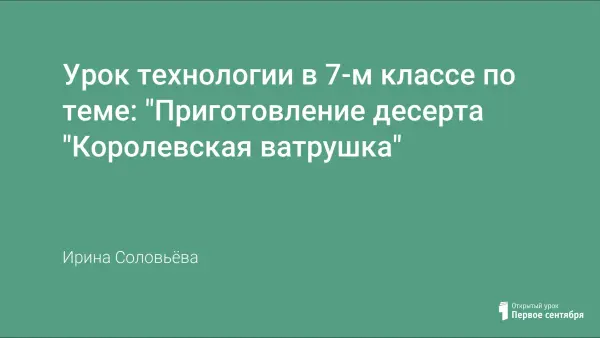 На уроках кулинарии в 7 классе учащиеся знакомятся с приготовлением обеда. Обед включает 4 блюда: закуска, первое блюдо, второе и десерт. На десерт подают сладкие блюда, они пополняют организм сахаром и завершают обед.