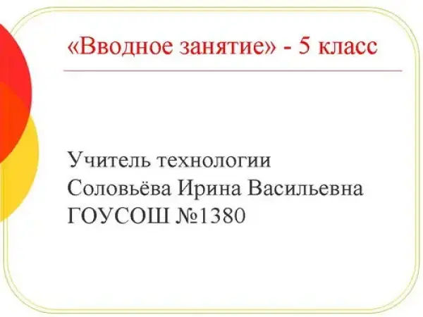 Учащиеся впервые приходят на урок технологии. Презентация дает возможность наглядно продемонстрировать учащимся содержание уроков технологии. Уроки кулинарии представлены готовыми блюдами, выполненными на уроках с 5-го по 8-е классы и сам процесс работы; уроки по шитью и рукоделию представлены изделиями учеников.