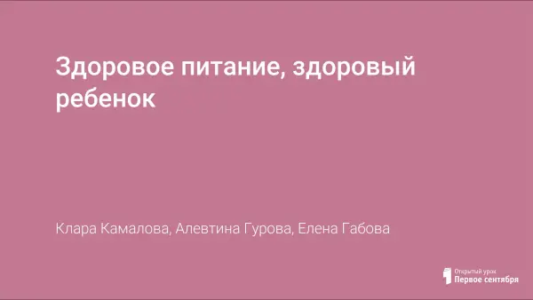 Здоровое питание, здоровый ребенок