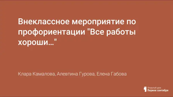 На внеклассном мероприятии учащимся дается представление об основах профессионального самоопределения; формируется первоначальный интерес к профессиям.