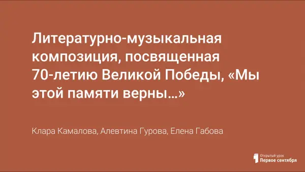 Литературно-музыкальная композиция, посвященная 70-летию Великой Победы, «Мы этой памяти верны…»