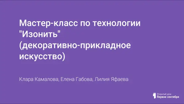 В работе предлагается выступление на мастер-классе по технологии декоративно-прикладного искусства. «Изонить» - рисунок нитью, нитяная графика, ниткография - вот несколько названий этого вида искусства. Изонить - это графический рисунок, выполненный нитями, натянутыми в определённом порядке на твёрдой основе.