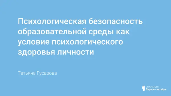 Психологическая безопасность образовательной среды как условие психологического здоровья личности