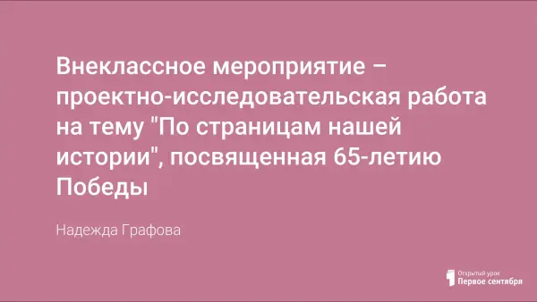 Проектно-исследовательская работа в 4-м классе, посвященная 65-летию Победы в Великой Отечественной войне.