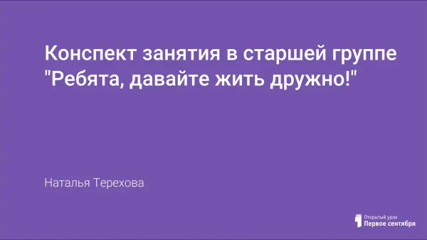 Цель занятия: формирование представлений о дружбе, доброте, развитие конструктивных взаимоотношений в группе сверстников.