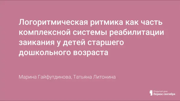 Логоритмическая ритмика как часть комплексной системы реабилитации заикания у детей старшего дошкольного возраста