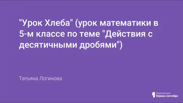 Урок математики в 5 классе по теме «Действия с десятичными дробями». Задачи подразумевают также ЗУН учащихся по темам «Среднее арифметическое» и «Проценты». Главная ценность урока в его воспитательном эффекте. Учащиеся, решая математические задачи с текстами «хлебной» тематики, сами приходят к выводу, как тяжело достаётся хлеб, каким богатством является хлеб.