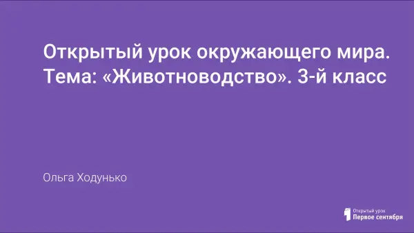Цель урока: формирование представлений обучающихся об отрасли сельского хозяйства – животноводстве, об особенностях разведения и содержания домашних животных.