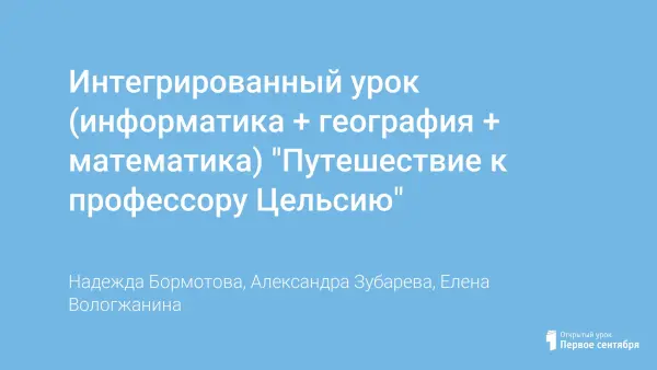 Интегрированный урок (информатика + география + математика) "Путешествие к профессору Цельсию"