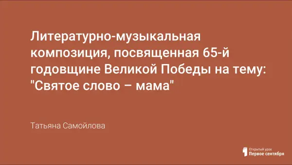 Данный сценарий создан на основе исторических фактов. И рассказывает о судьбах матерей, которые потеряли в годы Великой Отечественной войны своих сыновей, кто 5, кто 7, кто 8, кто 9. Рассказ о судьбах этих женщин ведется через образ семьи Степановых – Епистиньи Федоровны и ее девяти сыновей.