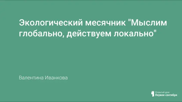 Доброй традицией в школе может стать проведение экологического месячника, как формы успешного сочетания урочной и внеурочной деятельности по воспитанию экологической культуры, здорового образа жизни. Практически весь коллектив школы может быть вовлечен в единое ключевое дело, где совершенствуются не только знания, но и практические навыки; развиваются чувства.