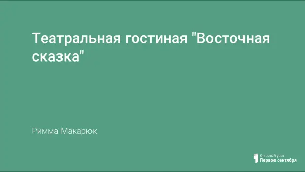 В ходе урока происходит создание условий для развития и активизации творческих способностей обучающихся средствами восточной сказки. Методическая разработка содержит логично структурированный и подробно описанный ход проведения учебного занятия в форме театральной гостиной.
